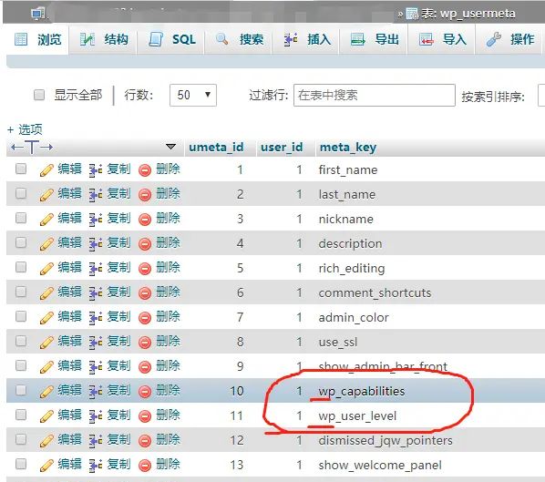 表: jd_usermeta-jd_capabilities、jd_usermeta-jd_user_level