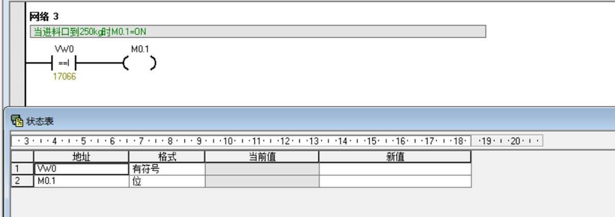 当VW0中的数据等于17066时比较触点[3]闭合。