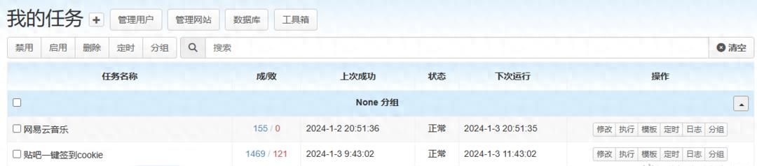 可以看到每个定时任务的成功,最新成功时间。当失败必定次数后来会自动停止