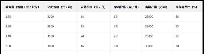 政府补贴(元 / 亩):玉米种植补贴每增加 50 元 / 亩,产量可能提升 3%-5%