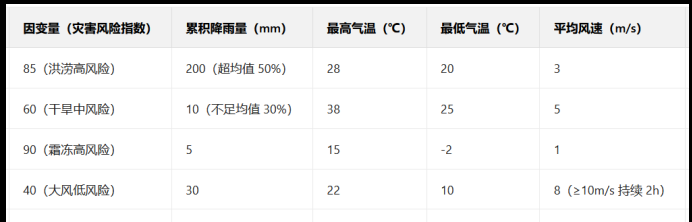 【2】例如:干旱风险指数 =(土壤含水率偏离阈值程度 ×40%)+(连续无雨日数 ×30%)+(蒸发量 ×30%)