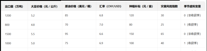 自变量:产量预测数据、市场供需量、运输成本、政策补贴(如粮食保护价)、国际市场价格等。