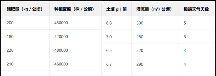 种植密度(株 / 公顷):影响作物竞争和光能利用。
