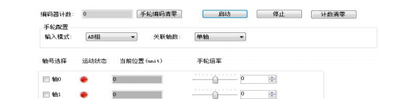 进入手轮测试窗口。注意:不同的控制卡,手轮配置选项可能不同