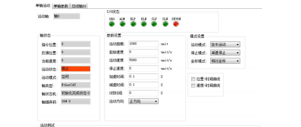 运动测试、帮助这四个主要的操作界面。设置好界面上的参数后,就可以进行一些基本的控制
