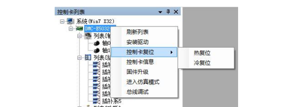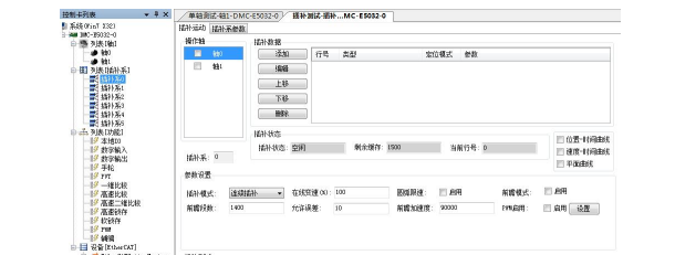 插入的控制卡并显示在列表上。轴列表会显示控制卡上已经连接的轴,插补系列表和功能列表