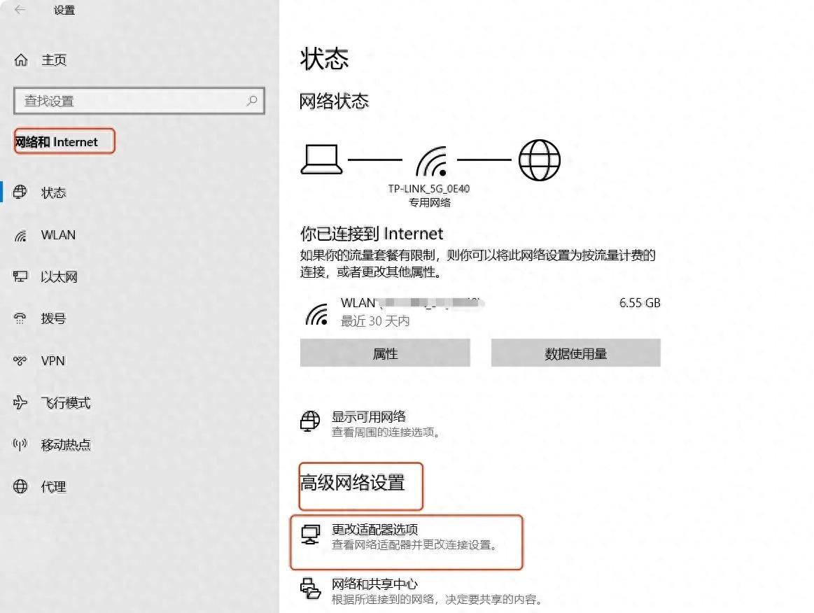 第一步点Win+i打开设置,点击网络与internet,选择高级网络设置-更改适配器选项