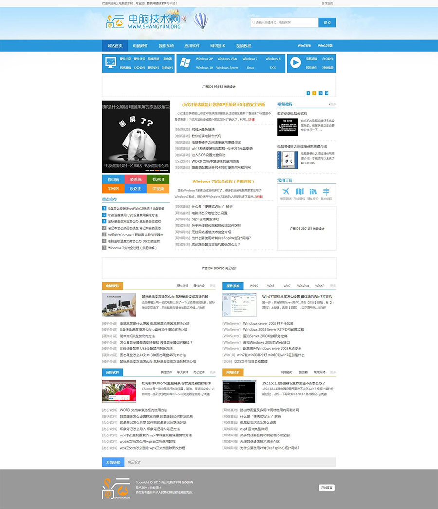 帝国cms内核蓝色简洁电脑技术知识文章资讯门户网站源码