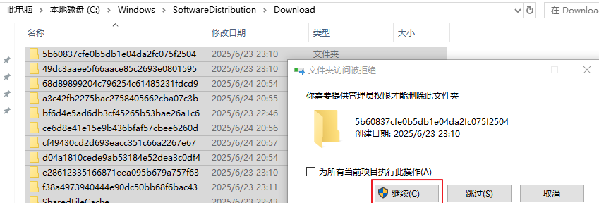 进入:C:WindowsSoftwareDistributionDownload