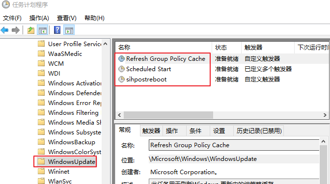 任务计划程序库 → Microsoft → Windows → WindowsUpdate