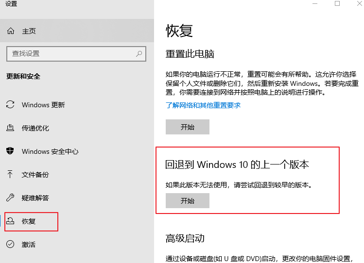 我的电脑,右键选择【属性】,搜索【Windows 更新】,点击【恢复】