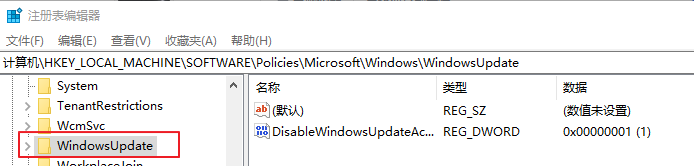 导航到路径:计算机HKEY_LOCAL_MACHINESOFTWAREPoliciesMicrosoftWindowsWindowsUpdate