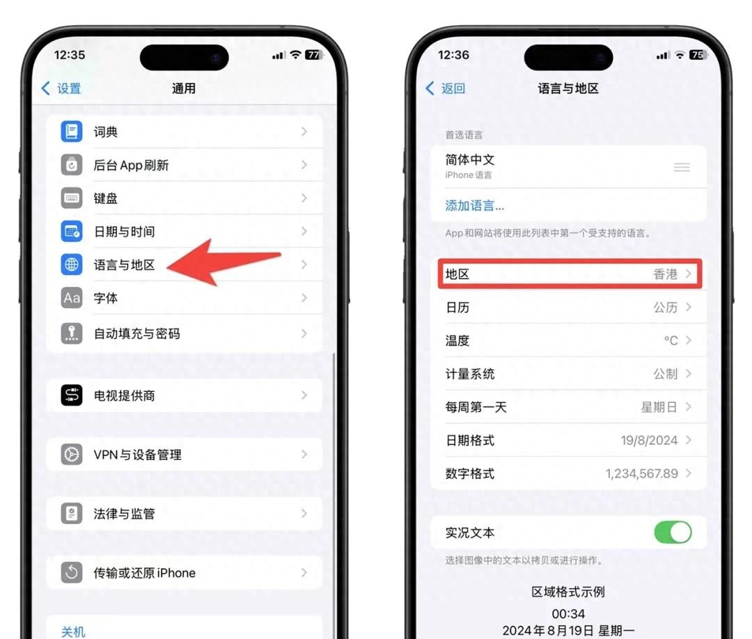 修改地区为香港后,时间和文字显示都不会有什么影响,毕竟都是咱中国大陆的一部分,这一点不用担心。