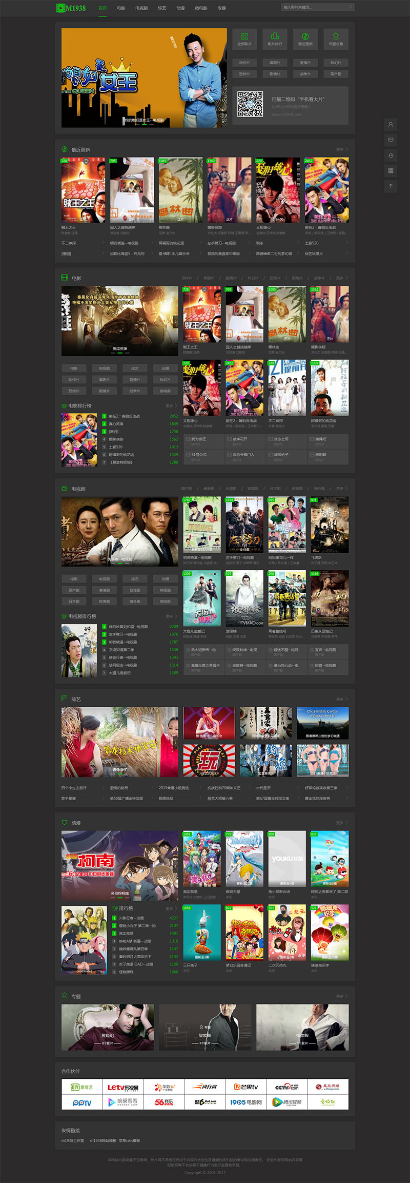M1938工作室出品苹果CMS V10 PC+手机自适应模板N616风格,内附安装说明