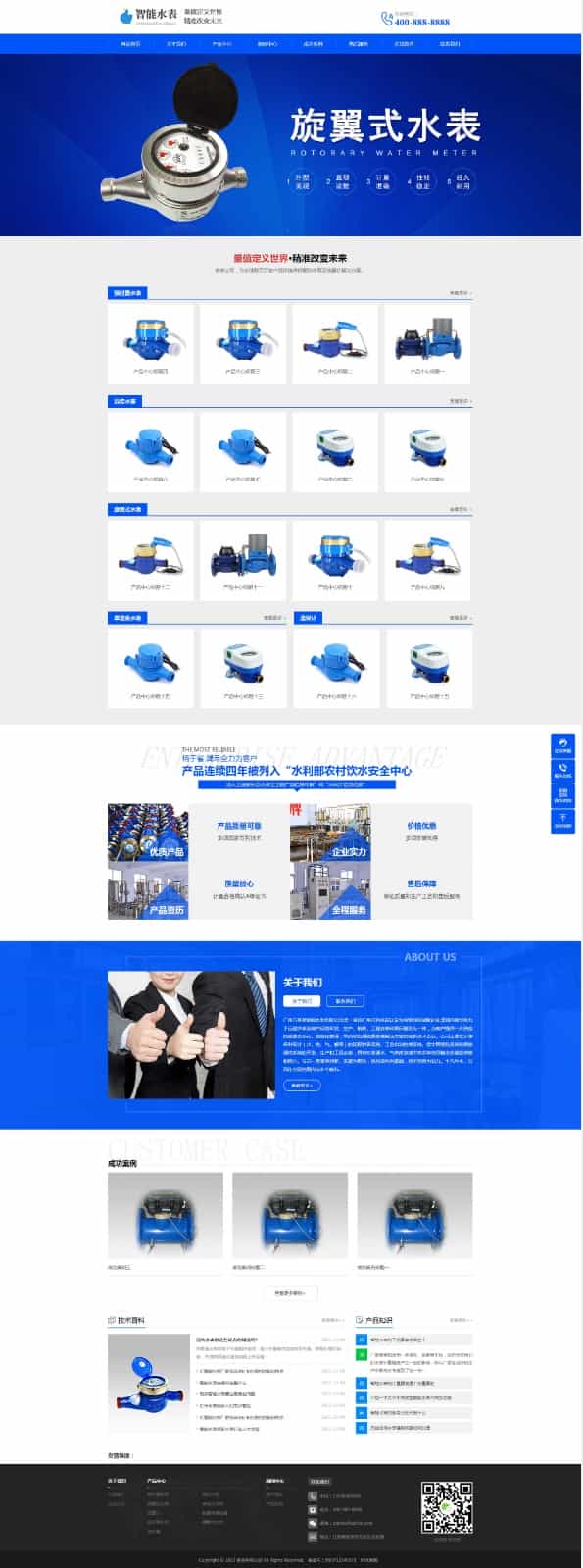 PbootCMS内核开发的网站模板,该模板适用于营销型网站、智能水表等企业,当然其他行业也可以做,只需要把文字图片换成其他行业的即可;
