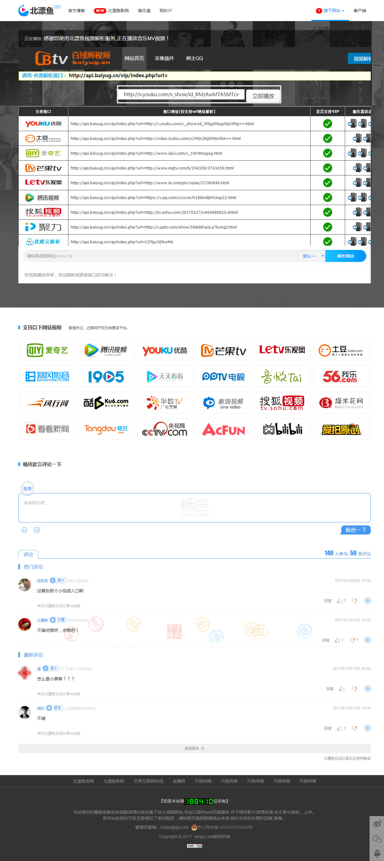 PHP北漂鱼vip视频解析源码 自适应手机端