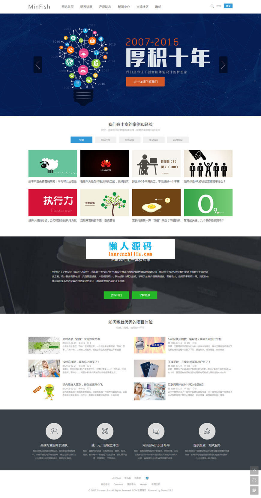 Discuz x3.4模板 小鱼设计COM主题-企业公司V1.2自适应手机端+小鱼应用设置中心插件,GBK+UTF8