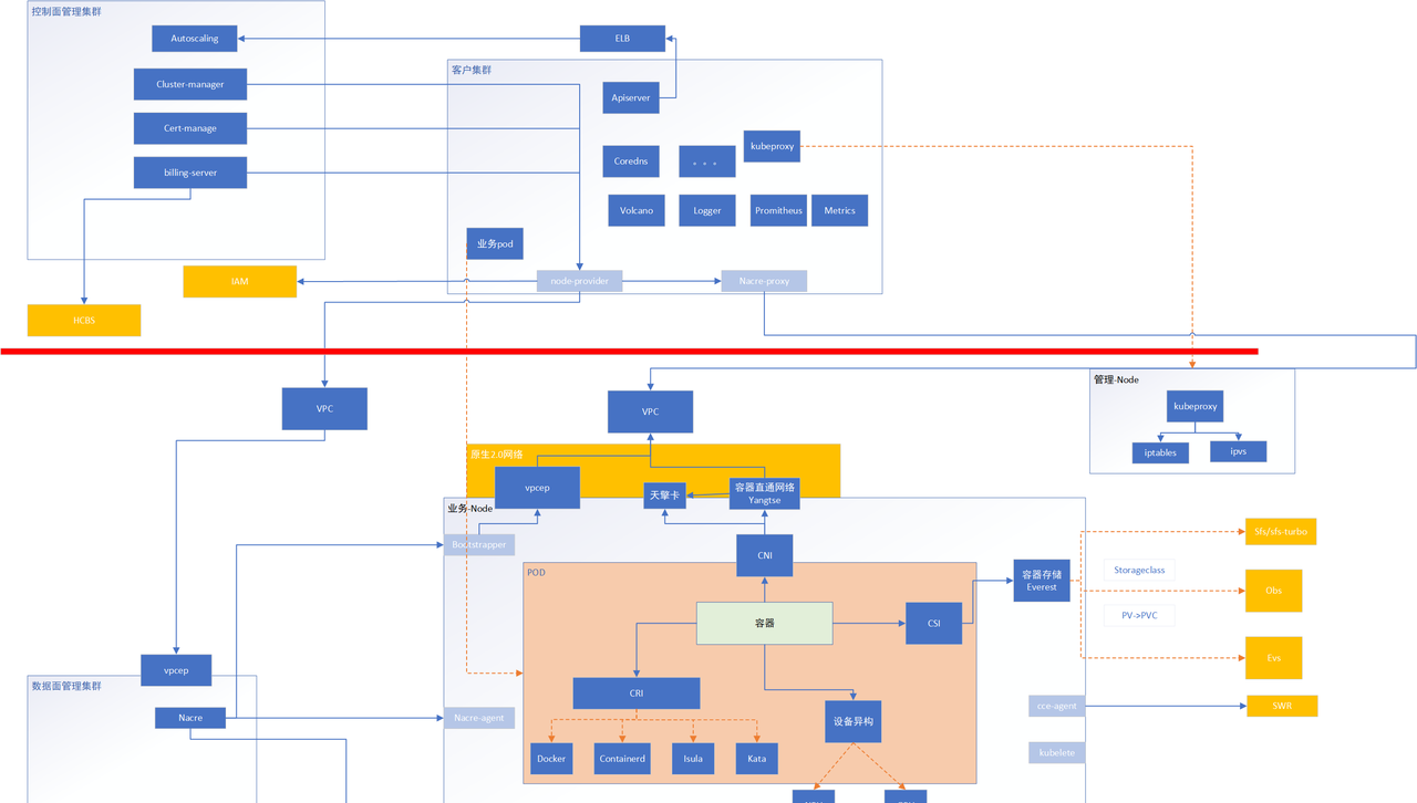 横向来说,cce产品多个服务来共同组成的,其产品内部也包含了多款产品,这些提供了容器的众多功能。