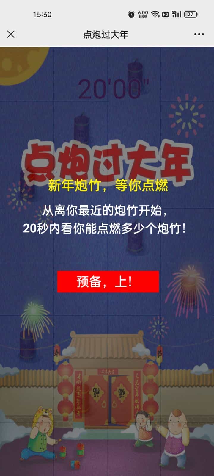 点炮过大年游戏,新年炮竹,等你点燃,代码开发语言为HTML无后台,从离你最近的炮竹开始,20秒内看你能点燃多少个炮竹!游戏速度节奏快,点燃的越多游戏得分越高。
