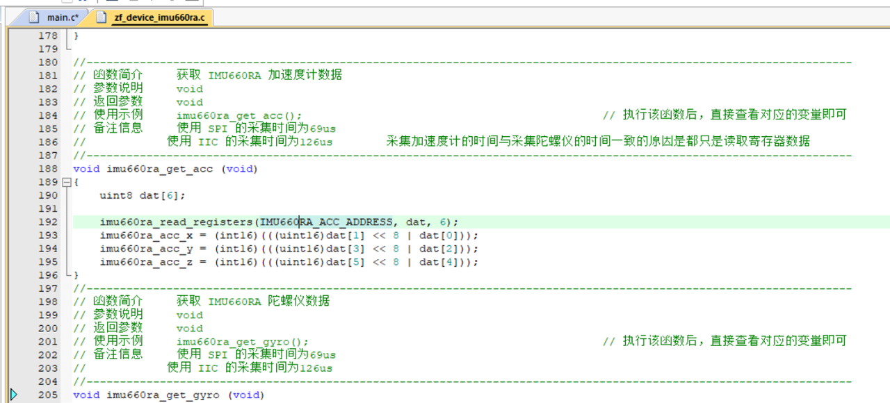 imu660ra_get_gyro(); //获取x、y、z方向角速度数值