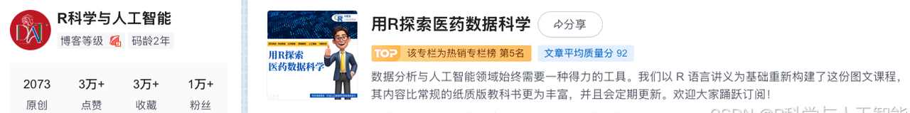 下面内容摘录自《用R探索医药数据科学》专栏文章的部分内容(原文5050字)。