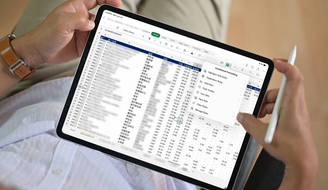 与写作、绘画之类从零开始创造的工作流程不同,表格数据处理起来一般需要进行大量的切屏参考、数据粘贴、编辑公式之类的操作。可一旦涉及到编辑操作,iPadOS 在面对 Excel 时最大的问题就会浮现出来:它的界面完全没有为任何一种操作方式做出优化。