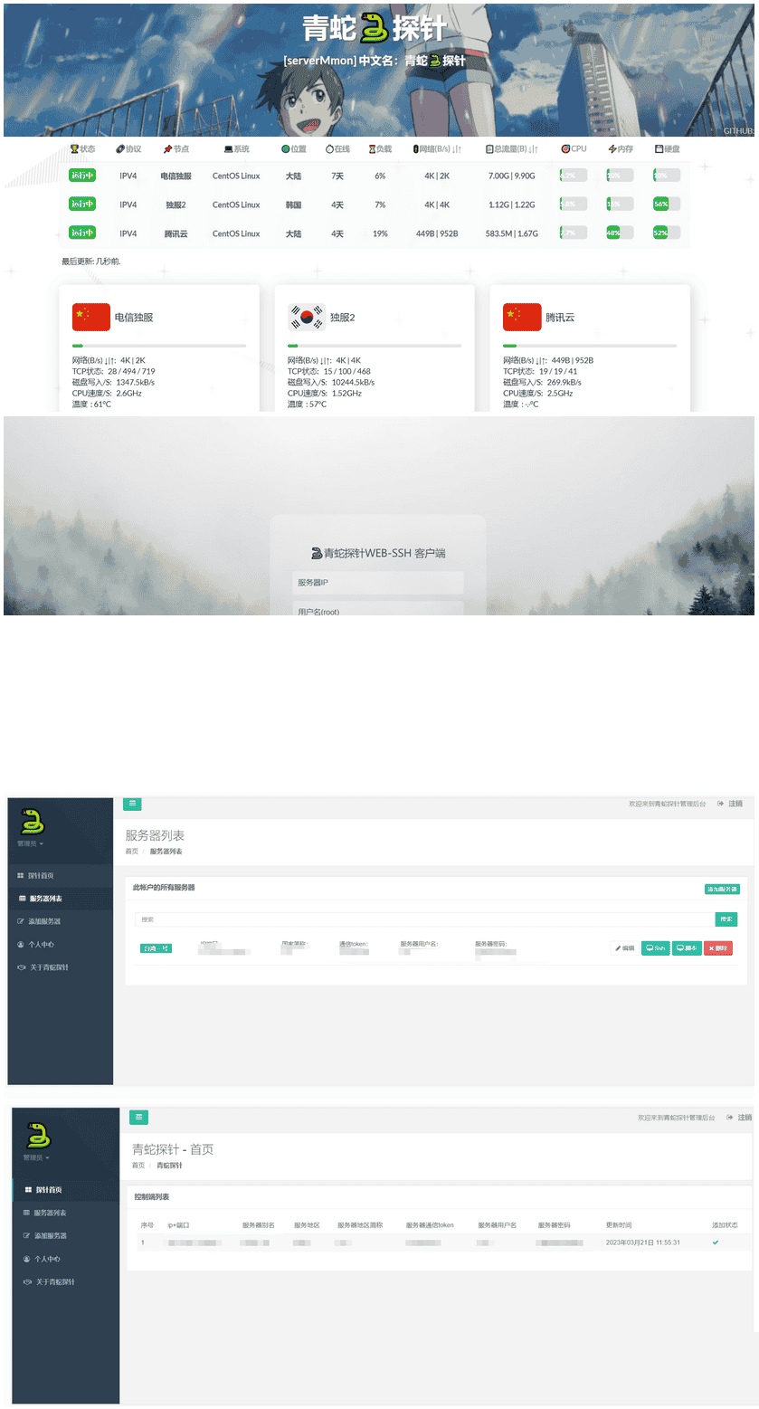 这个云探针和云监控系统集合了多项功能,可以帮助您轻松监控多台服务器的性能指标,同时还提供了实时报警、历史记录查询、可视化监控图表等功能,让您全面掌握服务器的状态。