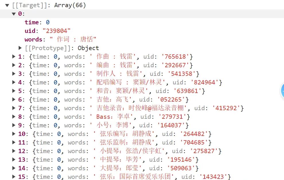 lyricList这就是最终生成的数组格式是这样的: