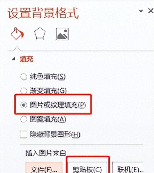 选中图片-右键剪切-空白处右键-选中设置背景格式-图片或纹理填充-剪贴板(也可选择文件-图片)-全部应用(所有新建页面都有背景)
