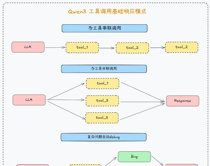 而对于Qwen3全系列模型来说,不仅支持Function calling,还支持工具的并联、串联调用甚至是自动debug: