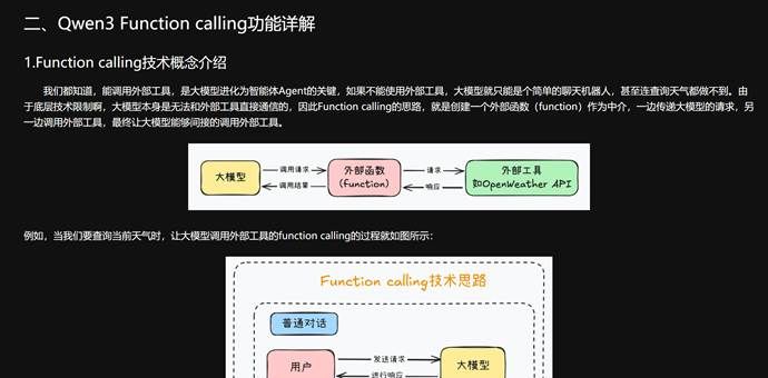 这里我们在公开课参考资料总,为大家整理了一份从零手动实现Qwen3 Function calling的代码实战流程: