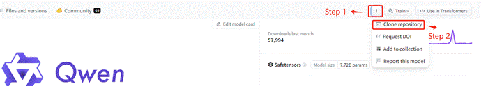在下载了Qwen的项目运行文件及配置好了Python的运行环境后,还剩下最后一步:需要把Qwen的这个模型本身下载到本地,从而才能通过项目文件中的代码逻辑,调用这个模型,最终达到启动模型服务的结果。