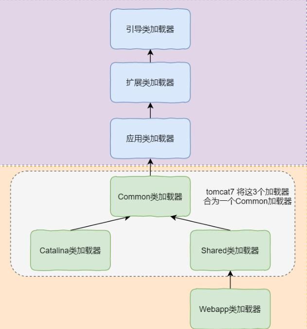 - 如果Tomcat本身的依赖和Web应用还需要共享,Common类加载器(CommonClassLoader)来装载实现共享