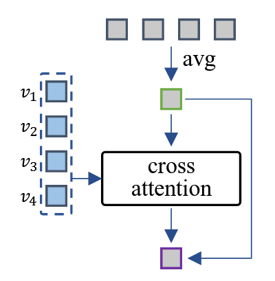 一些最近基于LLM的分割模型[92, 71]使用Mask2Former [5]范式作为掩码生成器。它们使用T个可学习的掩码token(通常T=100)作为Transformer解码器中的查询,以生成具有相应分数的T个候选掩码,然后通过二分匹配分配给描述嵌入2。与更倾向于根据对象自身属性进行推理的自然图像分割不同,在地理空间像素推理中,模型必须基于图像中的空间布局和对象之间的关联关系进行更多的理解和推断(例如,在图2中识别地震疏散区,这需要分析道路与建筑之间的拓扑关系)。此外,我们认为掩码查询机制[6, 5]在语言引导分割任务中是不灵活且冗余的,我们只需要根据指令生成可变数量的掩码。基于上述,我们提出直接使用描述嵌入作为掩码生成器的查询,并将其与图像的空间特征显式关联起来。 根据用户的指令,描述嵌入的长度有所不同,而在我们的地理空间像素推理或指向分割设置中,分割结果可以通过单一二进制掩码来表示。因此,我们引入了一个描述投影模块(D-Projector),将整个描述转换为一个单一向量,如图4所示。具体来说,描述嵌入被平均化为一个全局向量,然后通过交叉注意力操作与展开的多尺度视觉特征进行交互,并通过跳连接和线性层将其映射为查询向量。接下来,查询向量被输入到Mask2Former的Transformer解码器中,该解码器由堆叠的掩码注意力、自注意力和FFN组成。值得注意的是,由于掩码查询机制已经被移除,生成的掩码数量与查询数量相同,因此不再需要分数预测和二分匹配。最后,预测的掩码通过焦点损失[34]和骰子损失[48]的线性组合进行监督。