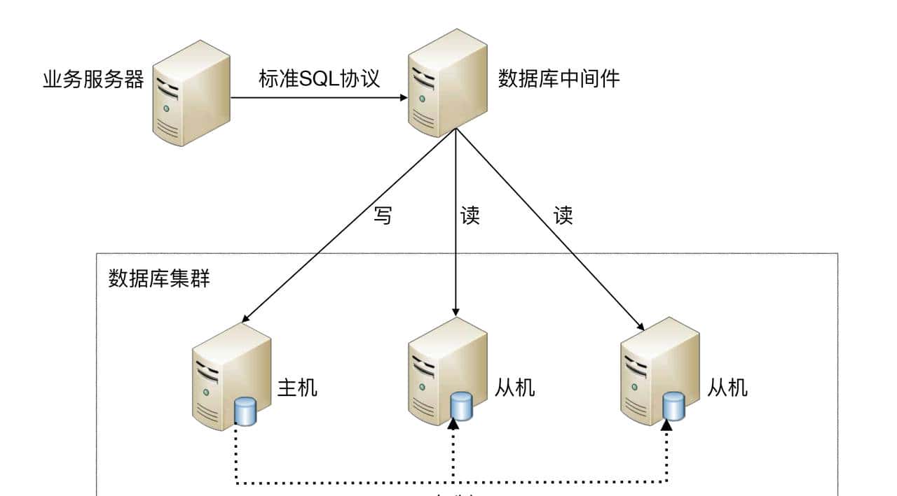 中间件封装指的是,实现读写操作分离和数据库服务器连接的管理。对于业务服务器来说,访问中间件和访问数据库没有区别,在业务服务器看来,中间件就是一个数据库服务器。