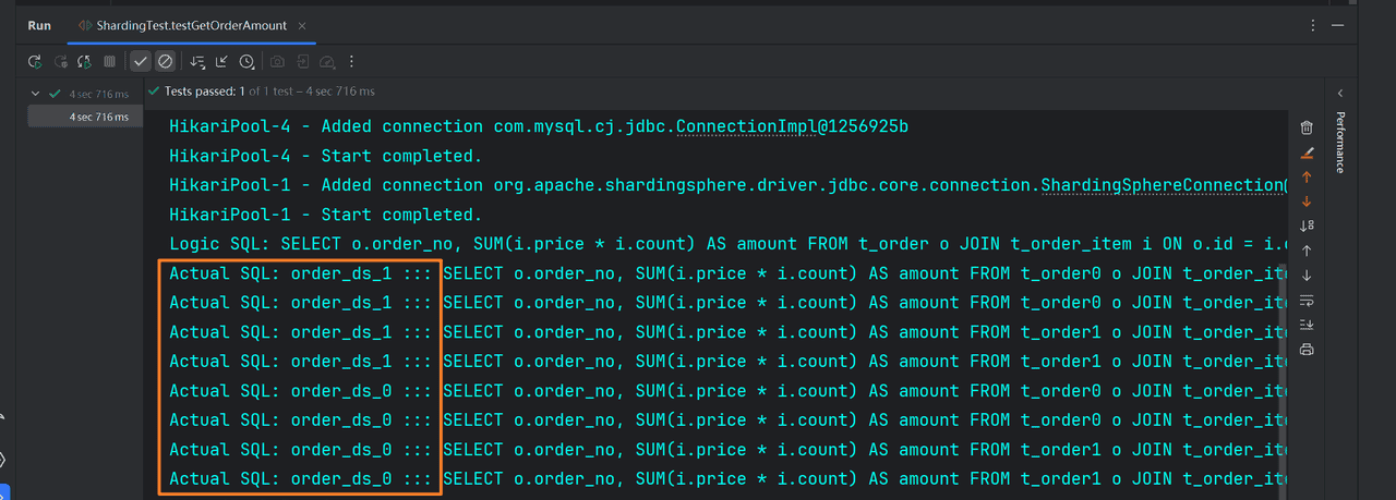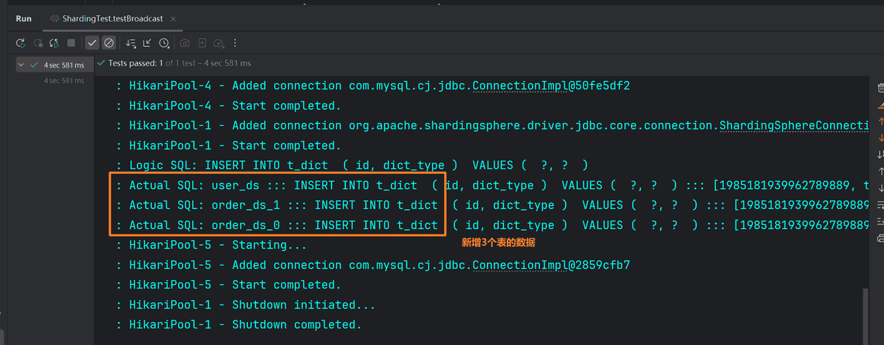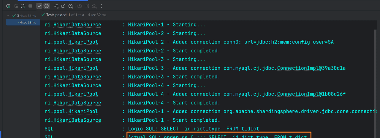 如果配置绑定表:测试的结果为4个SQL。 多表关联查询不会出现笛卡尔积关联,关联查询效率将大大提升。