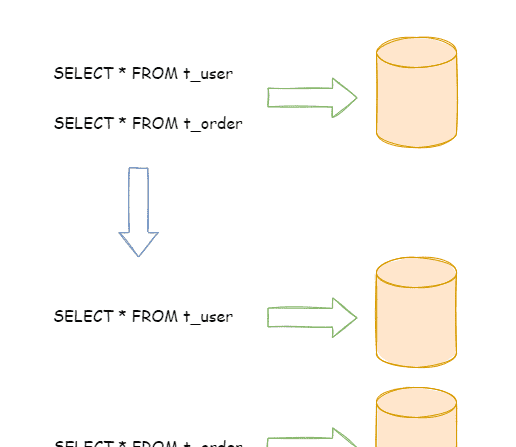 下图展示了根据业务需要,将用户表和订单表垂直分片到不同的数据库的方案: