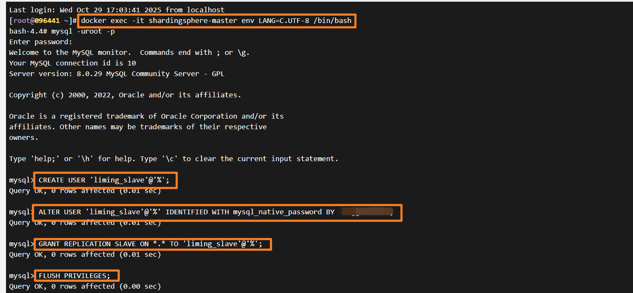 在server-order0、server-order1和server-user服务器中分别创建t_dict表