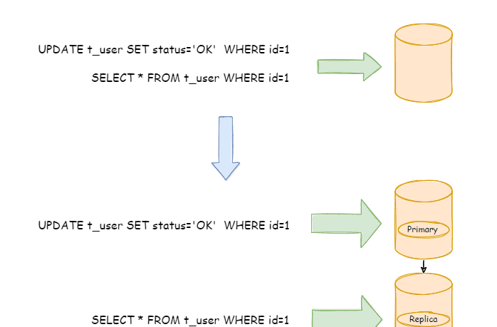 下图展示了根据业务需要,将用户表的写操作和读操路由到不同的数据库的方案: