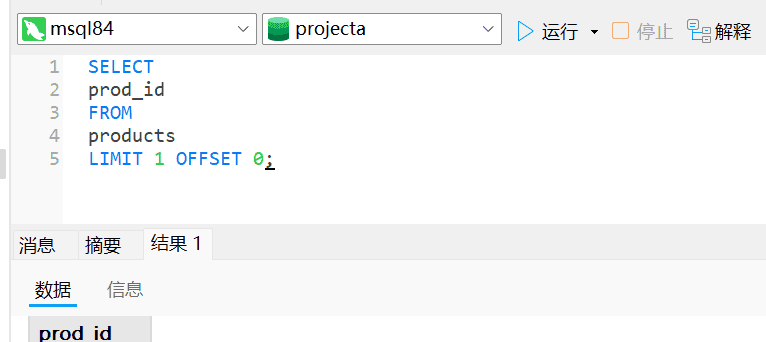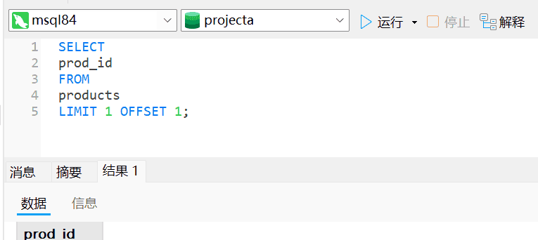 LIMIT 1 OFFSET 0; -- OFFSET 从第几行开始 LIMIT 检索几行