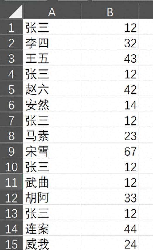 最终效果如图四,重复的张三,12只保留了一个。