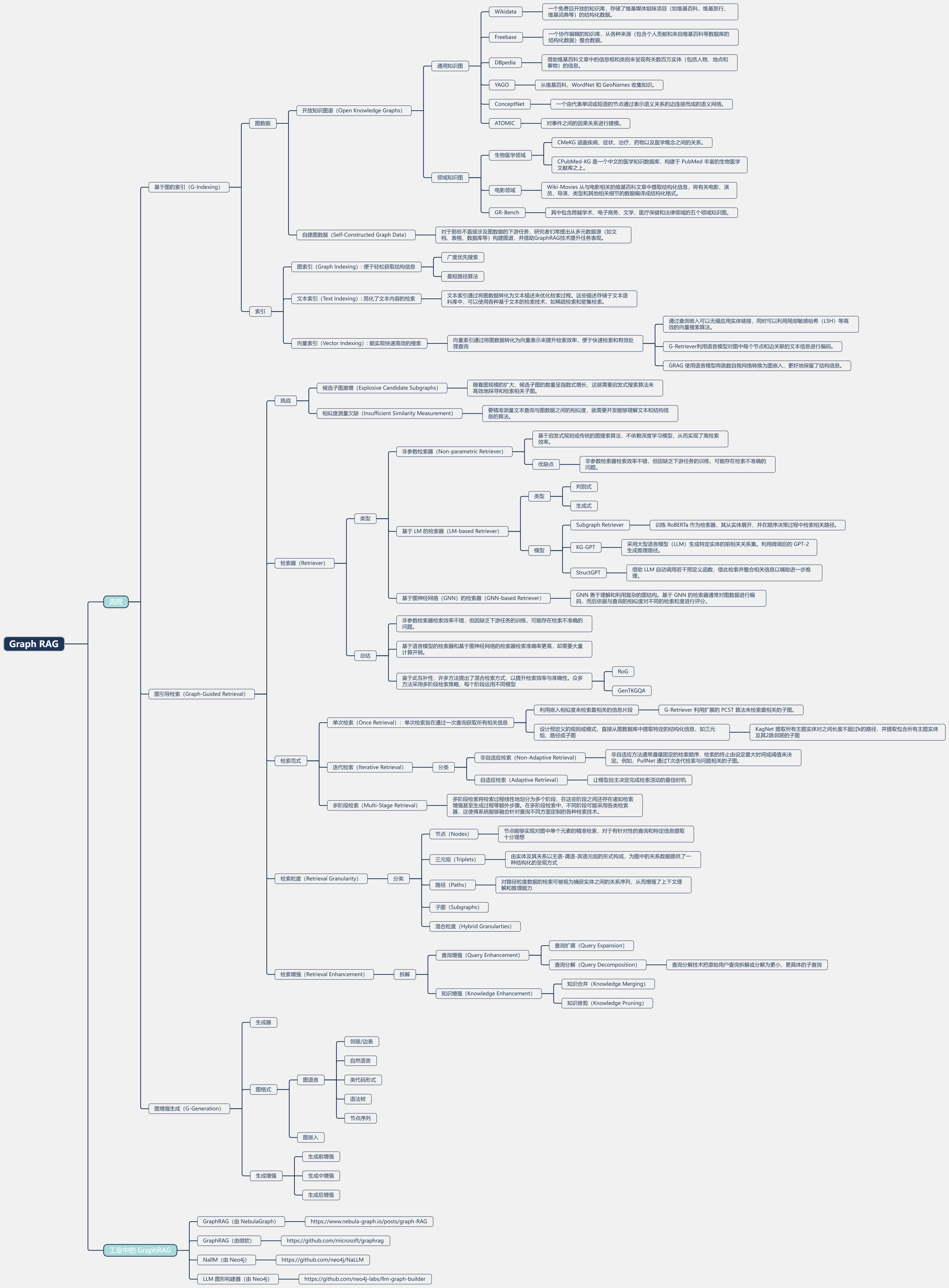 定义并系统化“GraphRAG”范式:将传统的 Retrieval-Augmented Generation(RAG)拓展为利用图结构知识(知识图、文档图、实体关系网等)的新范式,提出了一个三阶段工作流:G-Indexing(图式索引)→ G-Retrieval(图引导检索)→ G-Generation(图增强生成),并在每一阶段分类讨论了核心技术与训练策略。分类与技术谱系:对图的来源(开源知识图 vs. 自构图)、常见的图索引方法(图嵌入、实体规范化、结构化索引)、图检索策略(基于图的多跳检索、子图匹配、GNN-based ranking)、以及把图信息注入到生成器(prompt 工程、图到文本融合、结构感知解码)等技术进行了全面梳理。任务、评测与产业用例汇总:总结了GraphRAG 在问答、多跳推理、医疗/法律/金融等专业领域的应用案例,并讨论了评估指标(检索召回/精确度、生成质量、人类评估等)与现有数据集。