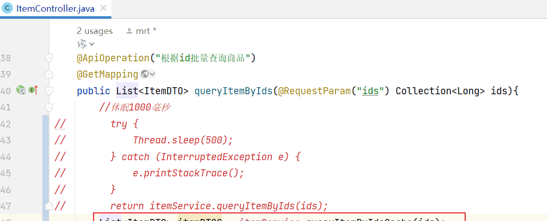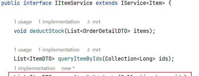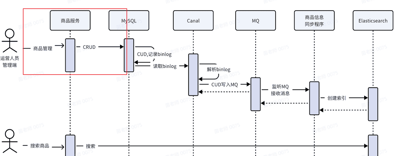 从图中可以看出,商品管理的CRUD方式仅仅包括对商品表的CRUD业务操作(下图红色框内部分),不再有操作MQ的相关逻辑。