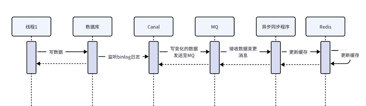 Canal是和MySQL存在联系,并且Canal负责和MQ交互,这种方案就是借助了Canal和MQ实现的。