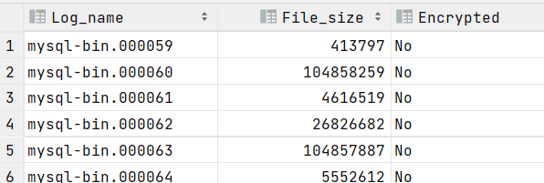 SHOW BINARY LOGS;