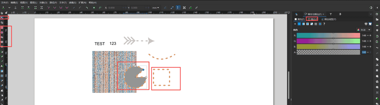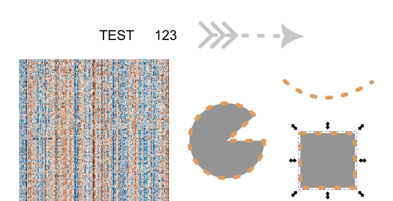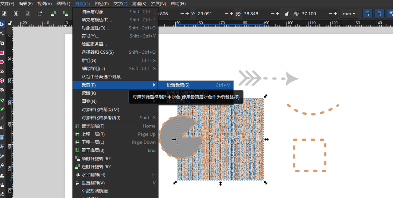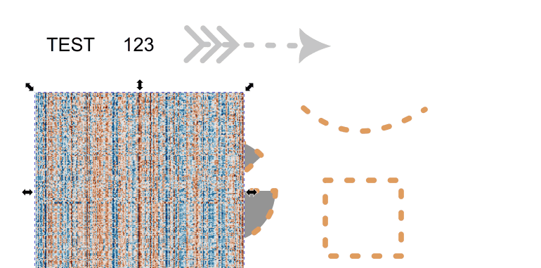 5.剪切图片。这一个功能非常的重要,因为有一些元素图片可能不是矢量格式,不能直接编辑,比如TEST图里的heatmap,创建一个想要裁剪的图形,然后选中图形以及想要裁剪的图片,选择对象中的裁剪,设置裁剪就可以裁出和图形交叠的部分,如下图所示,同理也可以反向裁剪