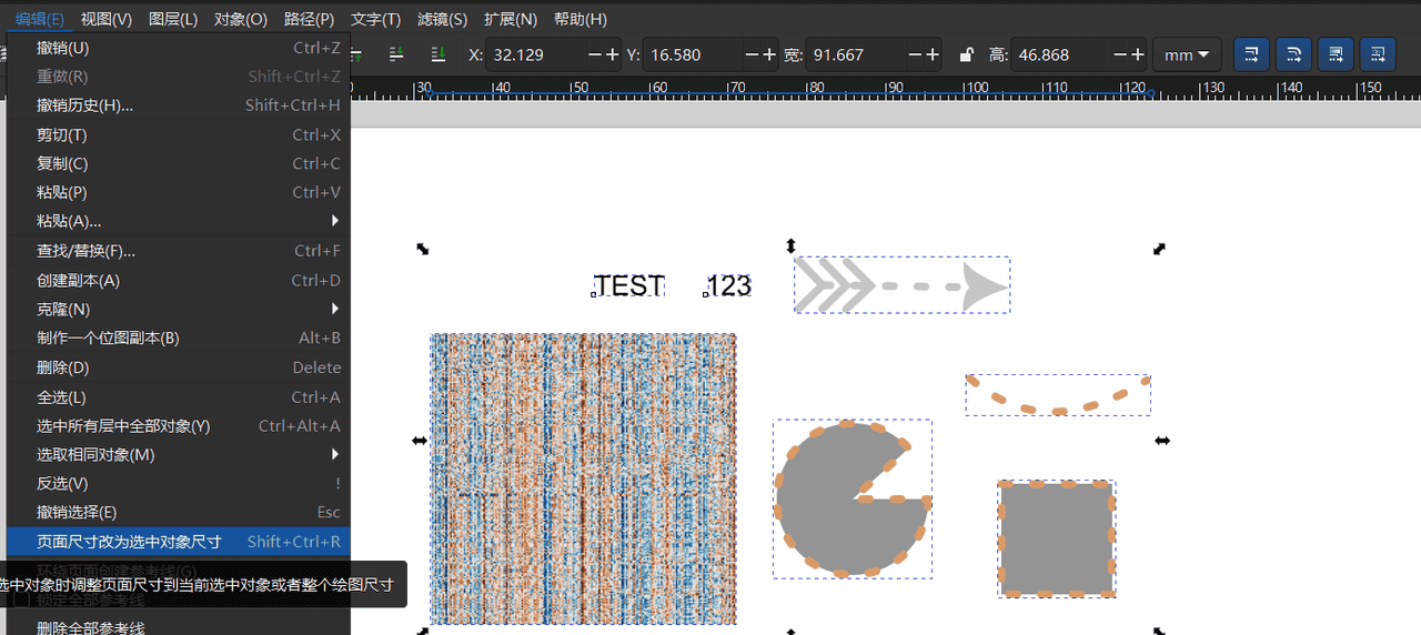 9.调节画布大小输出PDF。最后,我们选中已经编辑好的整张图片,点击编辑,将页面尺寸改为选中对象的尺寸,这张画布就是PDF存出来的内容啦。
