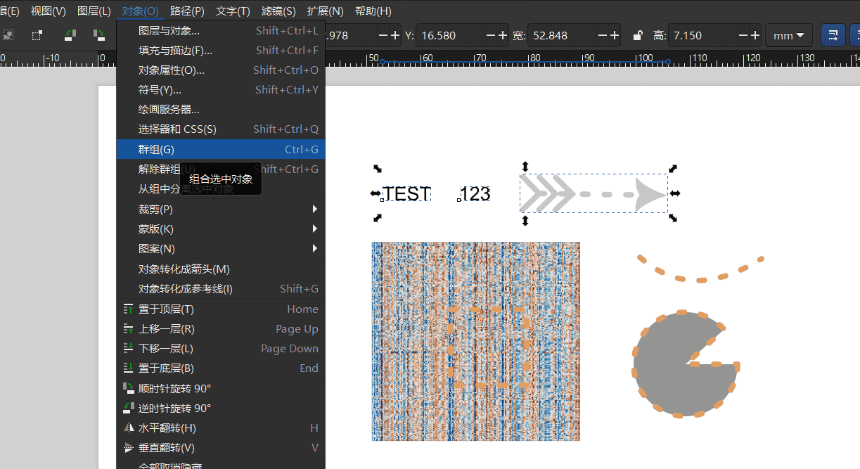 6.群组设置。群组等同于ppt中的组合,将多个元素组合成一个对象,方便后续对齐等处理,当然也可以解除目前已有的群组。