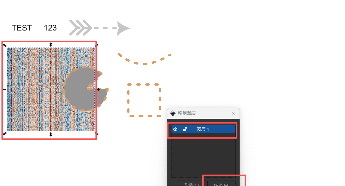 7.图层先后。有时候要调整图层谁在上谁在下,将要放在上面的元素选中,右键移动图层,确定后就移到上一层了。