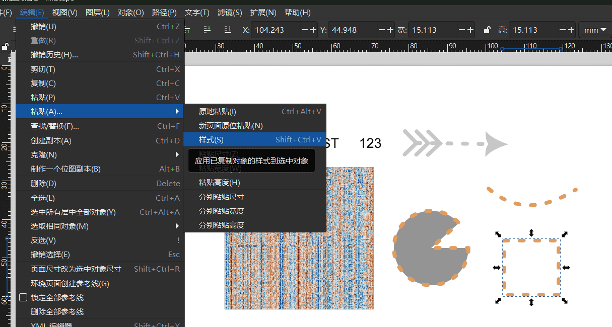 8.粘贴复制样式及大小。有时两个元素样式不一样,可以先选中A复制一下,然后选中B点编辑-粘贴-样式,B的样式就保持一致了,同样,如果只是粘贴高度,或者宽度都可以。